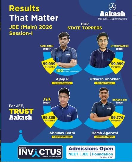 JEE Main 2026 Toppers List Out: Name, Score & Percentile, Aakashians Shine Again