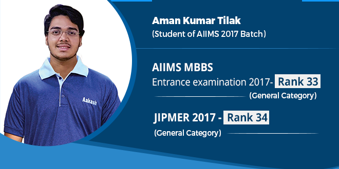 For almost all the students, who aspire to be a doctor, cracking coveted medical entrance exams such as NEET, AIIMS or JIPMER is a matter of pride and a step in the direction of their future goals. Out of the many students that study at Aakash, one such student who took a step towards his goal was Aman Kumar Tilak. Let’s read further to find out what he has to say about his journey to success and how Aakash helped him to achieve his goal.