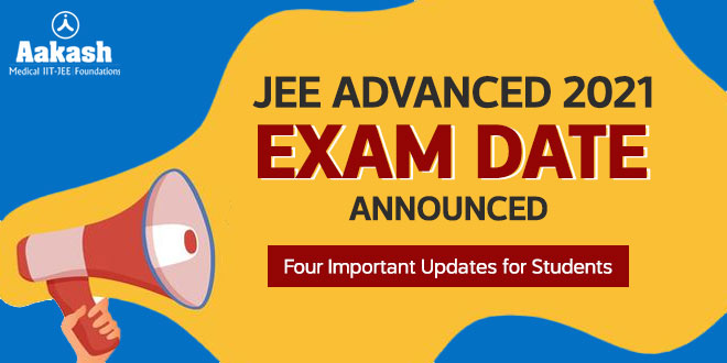 - JEE Advanced 2021 will be conducted on 03rd July. This will give more time for the candidates to prepare for the exam.