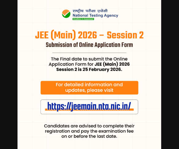 You can complete the JEE Main 2026 session 2 registration at jeemain.nta.nic.in.