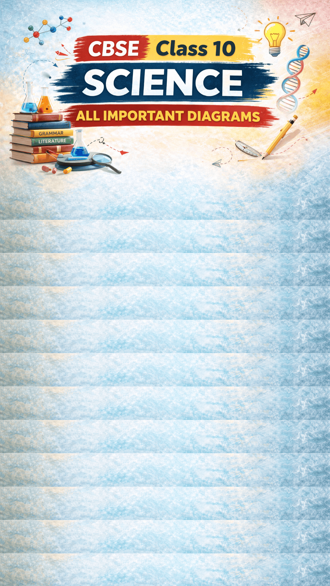 Step 1: Physics Formulas + numericals + neat diagrams Step 2: Chemistry Understand reactions, revise key chapters, use NCERT Step 3: Biology Keywords, short points, labelled diagrams Step 4: Practice Solve sample & previous year papers Step 5: Time Plan Focus on weak areas, practise daily Step 6: Writing Tips Neat answers, show steps, underline keywords Step 7: Final Revision Quick notes, formulas, important questions only